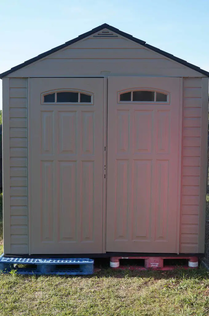 If you haven’t noticed by now, we bargain hunt, dumpster dive, repurpose and reuse; from Craig’s List to raiding dump piles along our back roads, anything is possible. Nothing is more obvious of our money saving ideas than our quest to build a new chicken pen and coop for $200 or less. I’m happy to report, we are meeting that goal. Craig’s List Find and the Plan of Action I must tell you, I’m addicted to Craig’s List; it’s a bargain hunter’s paradise. However, when using, always take extra safety precautions. We only meet sellers during daylight hours and we never go alone. A couple of weeks ago, we came across an advertisement for a Rubber Maid storage building: Like new condition with all parts including the instruction booklet…$100 or best offer. We offered $75 and have a nice, nearly new building for our chicken coop. The panels are slightly warped but will straighten out once we have the brackets and screws in. Our plan of action is simple, or at least we hope it is. The foundation of the coop is plastic pallets from hubby’s job: no charge. It has a plastic floor bottom making spring and fall super cleaning easy; just muck out then hose down. [callout title=TIP]When putting something together, read the instructions, it makes things much simpler. It’s amazing how easy it goes up when you put it together correctly.[/callout] There are four skylights in the roof, windows in each door, and vents in both the front and back peak. This will allow light for cleaning and egg gathering as well as providing ventilation. In the winter, we will cover the vents to keep it warm inside. Of course we have our supervisors during this procedure…meet Rocky, our Polish rooster. Rocky is part of the new chicks we added to our flock this year. Rocky likes to strut his stuff, but as you can see, the girls just ignore him. He isn’t crowing yet but I’m sure when he does, it will be impressive. We weren’t going to get any roosters, but Rocky and one other Polish were in the batch. We love Polish and couldn’t resist taking both of them. Cher is the female Polish (not pictured). She doesn’t have a large topknot of feathers yet like Rocky does. She is a beautiful reddish blond, much darker than her male counterpart. With the help of our excellent supervising team, we were able to get the building up in one day. Of course, if we had read the instructions first, we probably would have saved a couple of hours. Our next step is level it out so the door hangs properly, cut a hole in the side and add a ramp for the chickens to enter. The building is about 3 inches away from the fence so we need something to cover the chicken’s entrance to the building. We have an idea and will share that in our final post. We also need to finish the inside: add nesting boxes, a roost, and hang the waterer and feeder. Coming soon (hopefully next week) our final phase of Chicken Coop and Pen on the Cheep. [callout title=See How it All Began] Chicken Coop and Pen on the “Cheep” – Step 1[/callout]